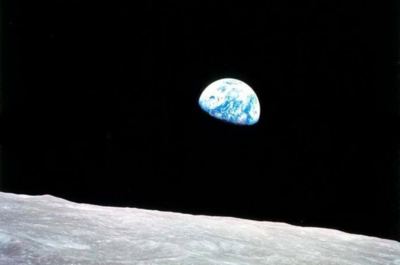 在月球的黑色天空中,蓝色的地球尤为显眼,尤为独特。但另一方面,这也不禁让人感到害怕。地球仿佛被周围无限的黑暗所觊觎,稍有不慎,就要被黑暗吞噬掉。从这个角度来看,地球显得尤为脆弱。