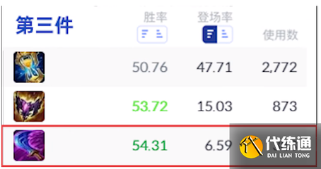 2、装备搭配出装必备的是无尽之刃 正义之手,替代:离子火花 巨人杀手 灭世者之帽。蓝霸符:在携带者施放技能后,携带者会回复20法力值。