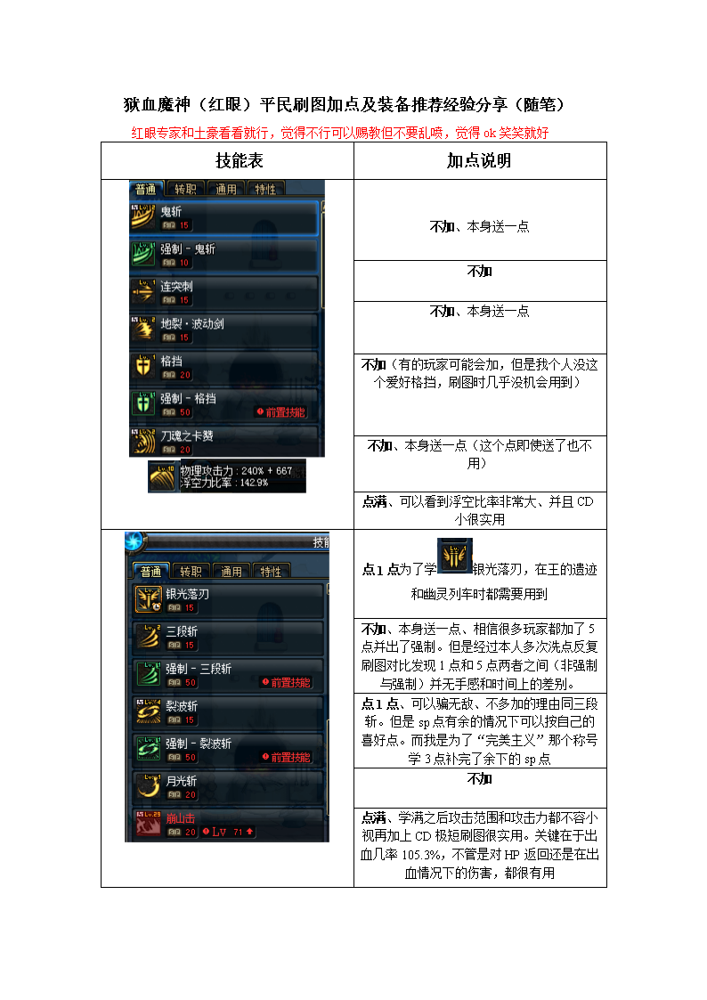 相信我,刷图很好用。 翔越不加,没事跳那么高干什么,浪费sp 下面重头戏,血气技能 必满技能,血十字,后期最常用技能配合xx可以赖死一堆boss, 血之狂暴:随级满 红眼招牌技能,不学删号。